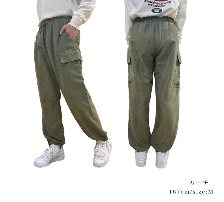 トレンドのカーゴパンツに裾ドローコード付なので”低身長”な方でも裾を絞れるので